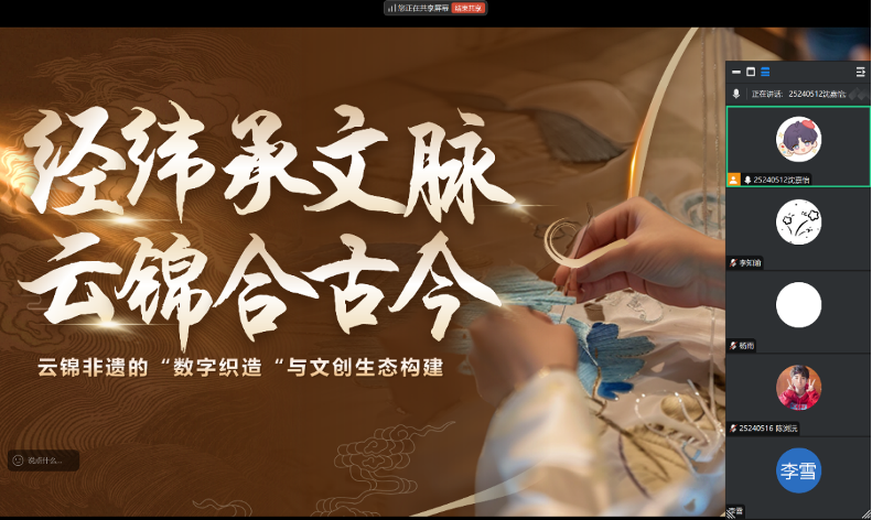 基于问卷分析结果,团队在线上线下开展云锦故事宣讲活动,以通俗化、趣味化的方式讲解云锦的历史源流、织造技艺、文化内涵,让更多人近距离感受非遗云锦的艺术魅力。